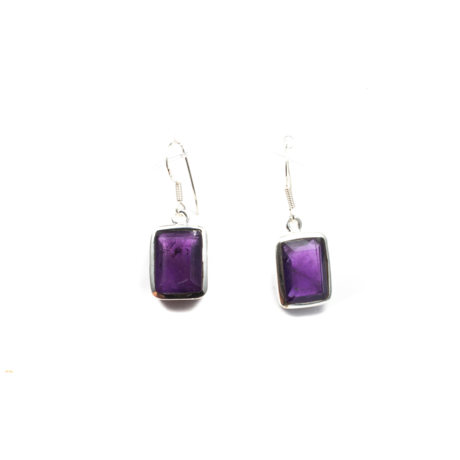 Cerceii confecționați din argint conțin pietre fațetate de ametist de formă rectangulară, încasetate pe contur. Modelul și finisajul simplu și elegant este realizat pe conturul pietrelor, pentru a le scoate în evidență culoarea și strălucirea. Cerceii sunt prevăzuți cu sistem de prindere pe ureche tip tortiță deschisă, astfel se așază perfect pe lob și sunt comod de purtat. Pentru un ansamblu complet, puteți opta pentru brățară sau colier asortate, disponibile în colecțiile Sheba.