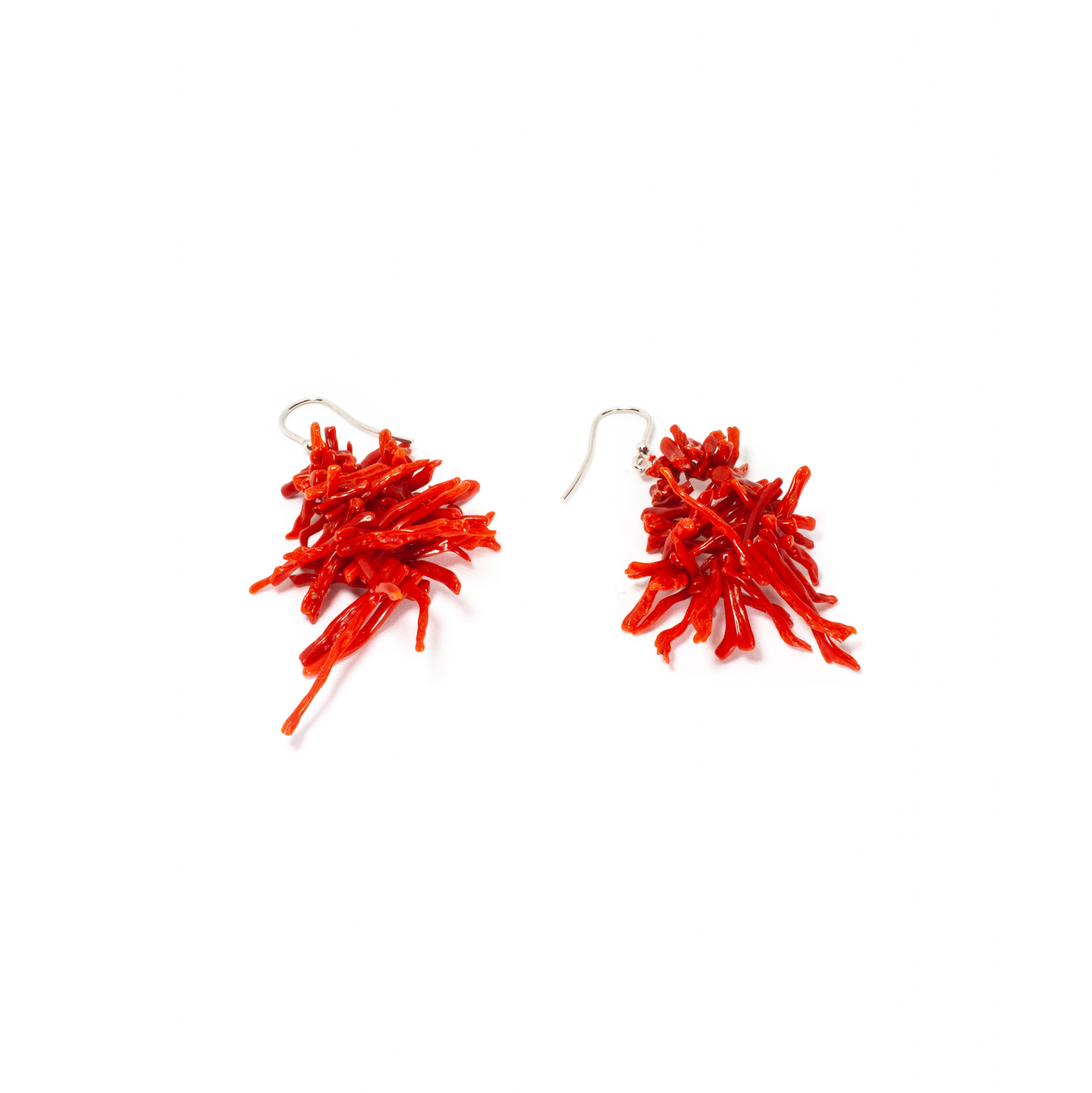 Buchețele exuberante de coral roșu sunt prinse sub cârlige subtile din Argint 92,5 % cu prindere tortiță deschisă, lăsând ramurile să danseze liber. Explozia de culoare aduce instant energie ținutelor neutre, outfit-urilor boho și rochiilor de vară, păstrând totodată eleganța artizanală specifică Sheba.