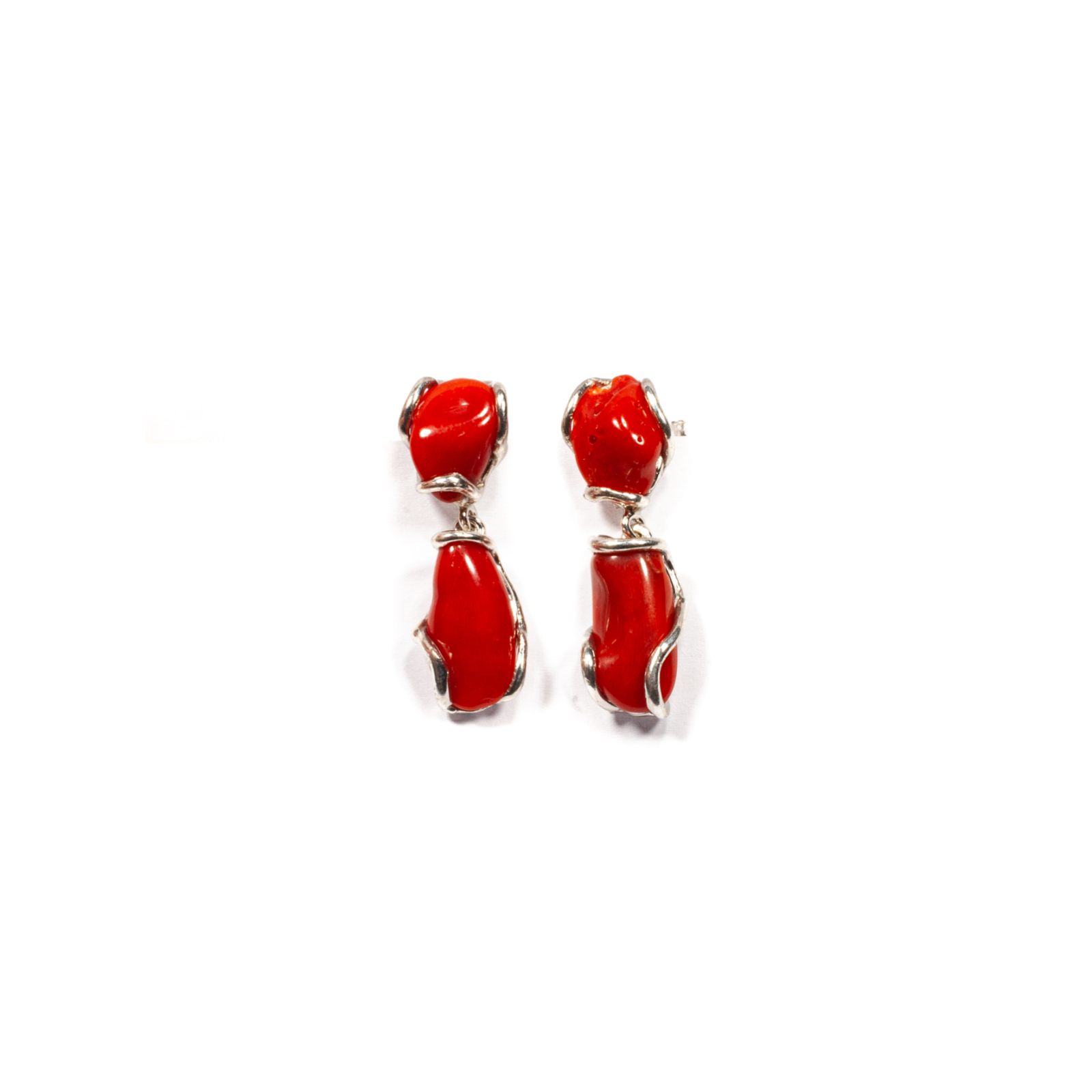 Cerceii confecționați din argint conțin pietre naturale de coral roșu aprins, încasetate pe contur. Modelul și finisajul simplu și elegant este realizat pe conturul pietrelor, pentru a le scoate în evidență culoarea și strălucirea. Cerceii sunt prevăzuți cu sistem de prindere pe ureche tip tijă cu fluturaș, astfel se așază perfect pe lob și sunt comod de purtat. Pentru un ansamblu complet, puteți opta pentru brățară sau colier asortate, disponibile în colecțiile Sheba.