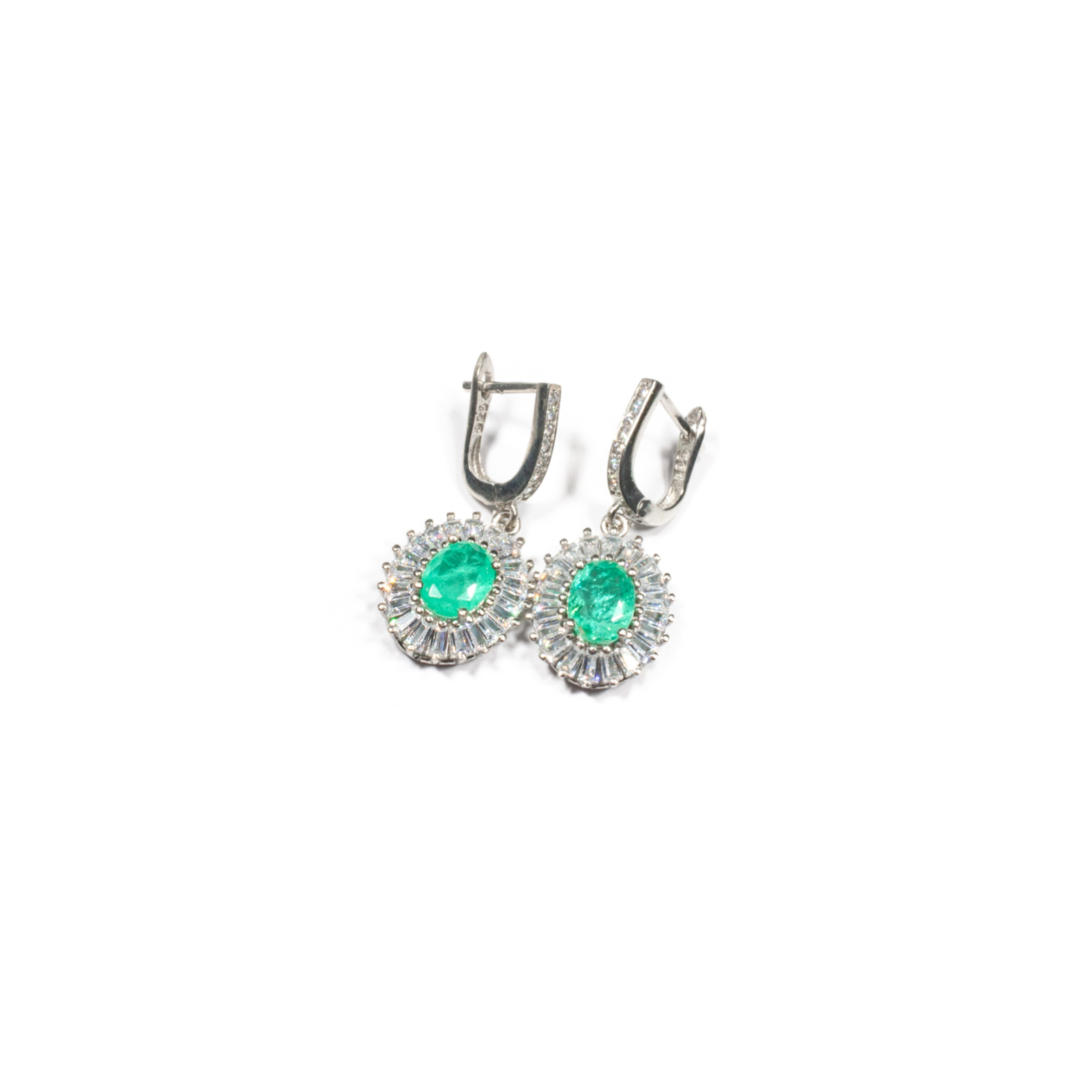 Cerceii din argint rodiat conțin pietre fațetate de paraiba de formă ovală, prinse în gheruțe, conturate de mici zirconii fațetate. Modelul și finisajul simplu și elegant scoate în evidență culoarea și strălucirea pietrelor. Cerceii sunt prevăzuți cu sistem de prindere pe ureche tip închizătoare englezească, pentru o oferi un grad mai ridicat de siguranță și confort. Cerceii reprezintă o bijuterie fină și elegantă, plină de energie și de culoare. Puteți cere ajutorul consilierilor Sheba pentru a vă comanda, în funcție de preferințe și de ținuta la care doriți să îi purtați, un pandantiv cu aceeași piatră.