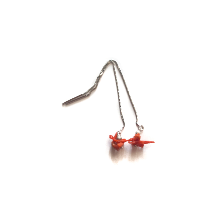 Cercei pendul, concept Ioana Condurățeanu, realizați manual în atelierele Sheba din pietre naturale, cu accesorii din argint. Cerceii sunt compuși din crenguțe de coral roșu natural, suspendate de un lanț fin din argint, veneziana diamantata, ce se termină cu un știft cu ajutorul căruia se trece lanțul prin lobul urechii. Cerceii se pot suspenda în orice poziție doriți, piatra fiind suficient de ușoară pentru a nu culisa din cauza unei greutăți necorespunzătoare. Cerceii reprezintă o bijuterie fină și elegantă, fascinanți datorită balansului subtil al pietrelor. Puteți cere ajutorul consilierilor Sheba pentru a vă comanda, în funcție de preferințe și de ținuta la care doriți să îi purtați, un pandantiv potrivit.