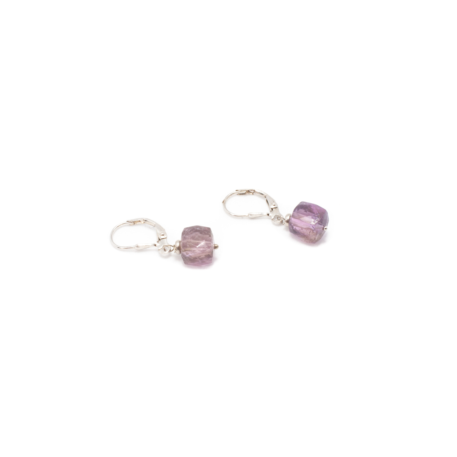 Cercei unicat, concept Ioana Condurățeanu, realizați manual în atelierele Sheba din pietre naturale, cu accesorii din argint. Cerceii sunt compuși din pietre fațetate de ametist, de formă rectangulară. Cerceii sunt prevăzuți cu sistem de prindere pe ureche de tip tortițe închise (lever-back), oferind un plus de sigurață și confort. Bijuteria oferă o notă de serenitate și rafinament, potrivită atât pentru ținute smart-casual, cât și pentru evenimente elegante. Puteți cere ajutorul consilierilor Sheba pentru a vă comanda, în funcție de preferințe și de ținuta la care doriți să îi purtați, un pandantiv potrivit.