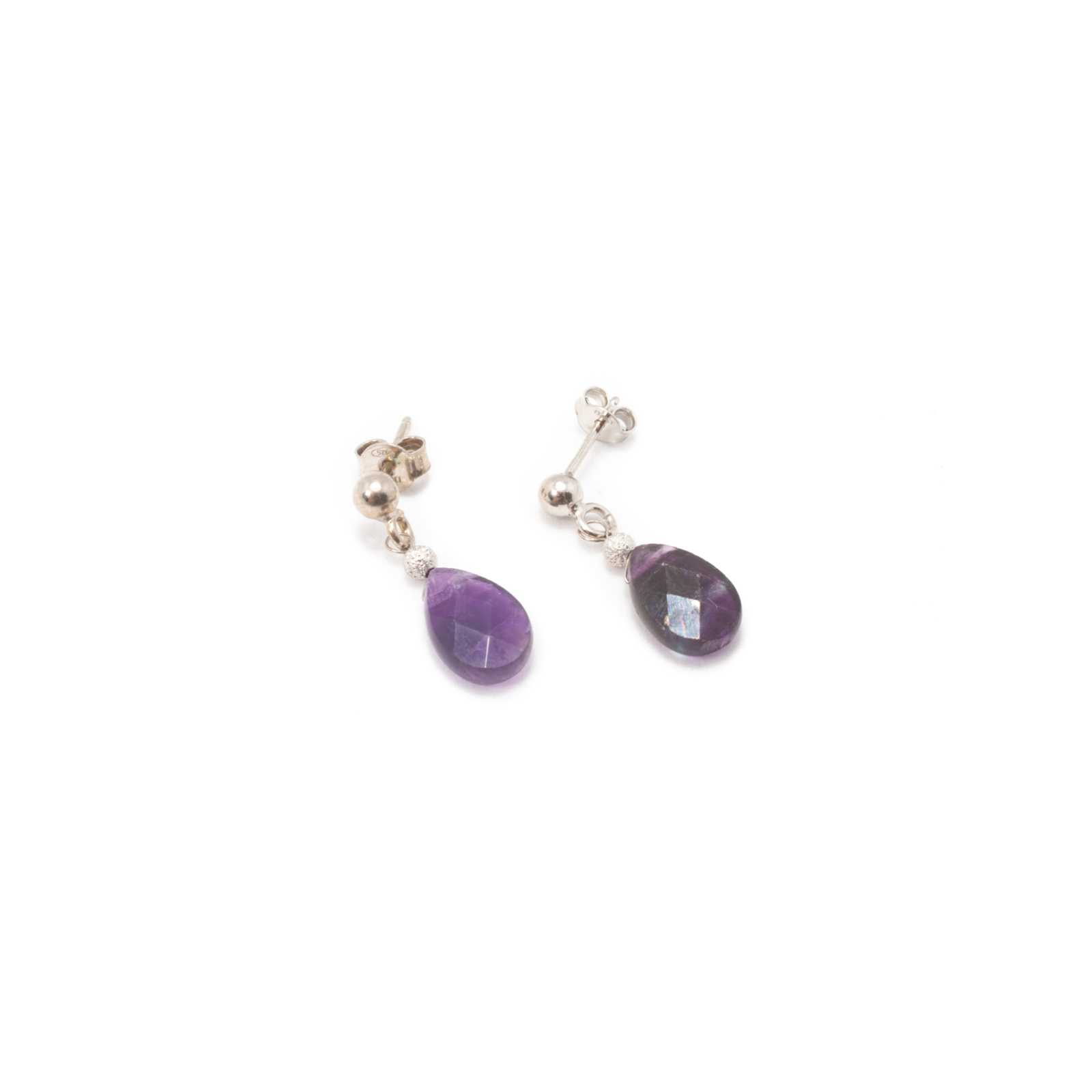 Cercei unicat, concept Ioana Condurățeanu, realizați manual în atelierele Sheba din pietre naturale, cu accesorii din argint. Cerceii sunt compuși din pietre fațetate de ametist, de formă lacrimă. Cerceii sunt prevăzuți cu sistem de prindere pe ureche tip tijă cu fluturaș, astfel se așază perfect pe lob și sunt comozi de purtat. Bijuteria oferă o notă de serenitate și rafinament, potrivită atât pentru ținute smart-casual, cât și pentru evenimente elegante. Puteți cere ajutorul consilierilor Sheba pentru a vă comanda, în funcție de preferințe și de ținuta la care doriți să îi purtați, un pandantiv potrivit.