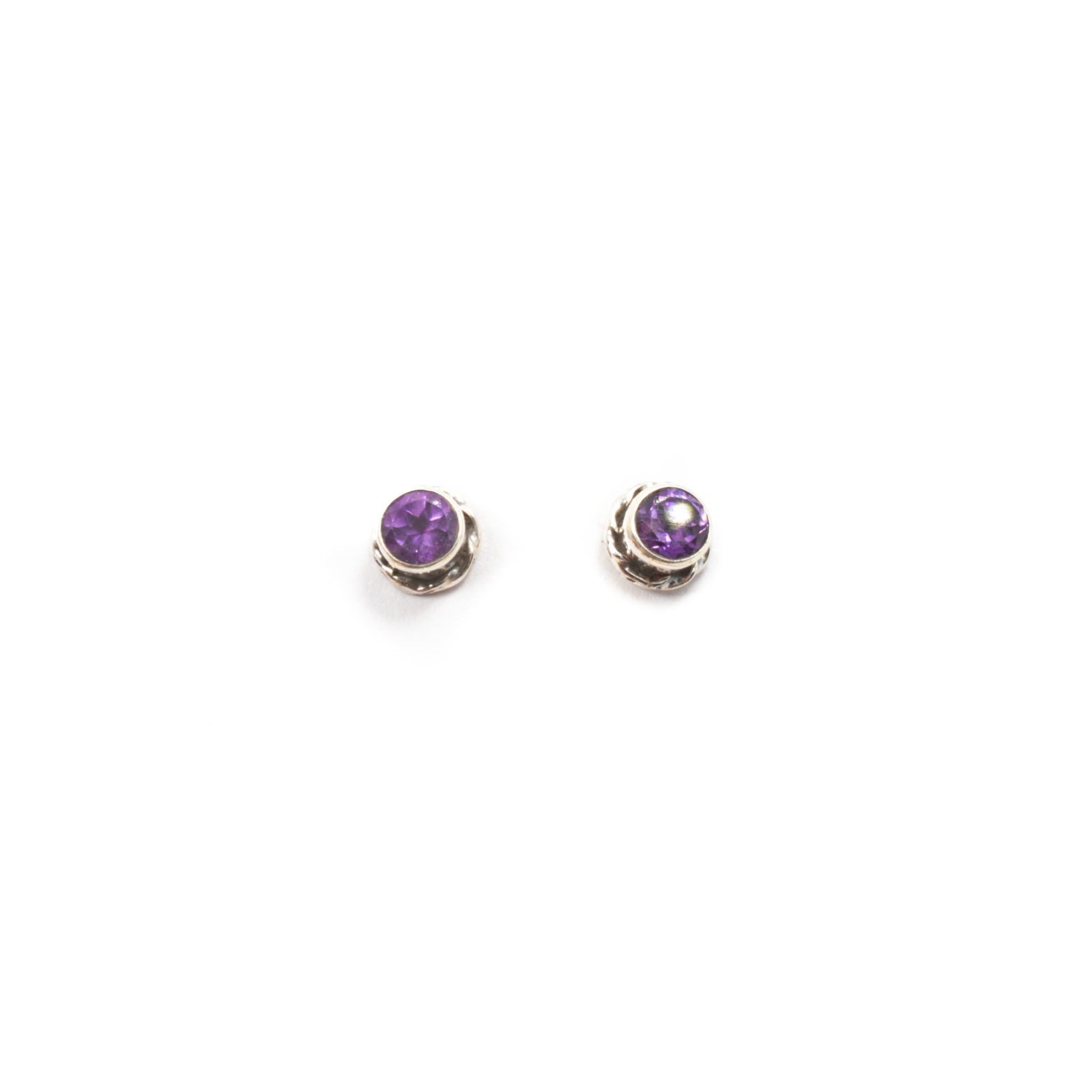 Cercei realizați manual din argint patinat ce conțin pietre naturale fațetate de ametist, de formă rotundă, încasetate pe contur. Modelul și finisajul simplu și elegant scot în evidență culoarea și strălucirea pietrelor. Cerceii sunt prevăzuți cu sistem de prindere pe ureche tip tijă cu fluturaș, astfel se așază perfect pe lob și sunt comozi de purtat. Cerceii reprezintă o bijuterie fină și elegantă, plină de energie și culoare. Puteți cere ajutorul consilierilor Sheba pentru a vă comanda, în funcție de preferințe și de ținuta la care doriți să îi purtați, un pandantiv cu aceeași piatră.