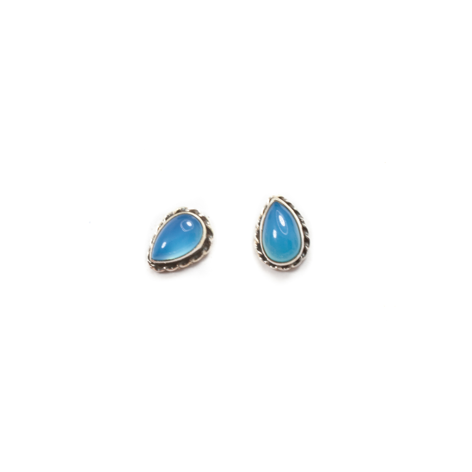 Cercei realizați manual din argint patinat ce conțin pietre naturale cu tăietură caboșon de calcedonie, de formă lacrimă, încasetate pe contur. Modelul și finisajul simplu și elegant scot în evidență culoarea și strălucirea pietrelor. Cerceii sunt prevăzuți cu sistem de prindere pe ureche tip tijă cu fluturaș, astfel se așază perfect pe lob și sunt comozi de purtat. Cerceii reprezintă o bijuterie fină și elegantă, plină de energie și culoare. Puteți cere ajutorul consilierilor Sheba pentru a vă comanda, în funcție de preferințe și de ținuta la care doriți să îi purtați, un pandantiv cu aceeași piatră.