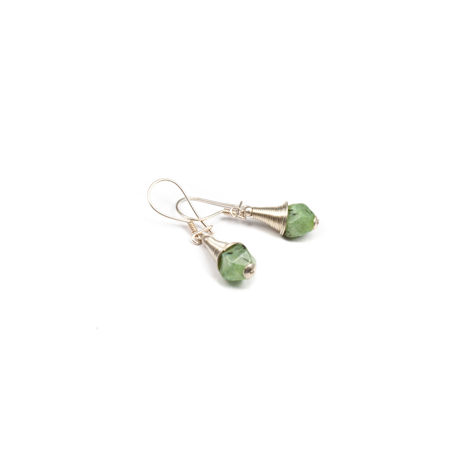 Cercei din pietre naturale cu argint, confectionați manual în atelierele Sheba. Cerceii sunt compuși din pietre fațetate de prehnit de formă sferică. Cerceii sunt prevăzuți cu sistem de prindere pe ureche tip tortiță închisă, oferind un plus de sigurață și confort. Cerceii reprezintă o bijuterie fină și elegantă, plină de energie și de culoare, fascinanți datorită balansului subtil al pietrelor. Pentru un ansamblu complet, puteți opta pentru brățară sau colier asortate, disponibile în colecțiile Sheba.