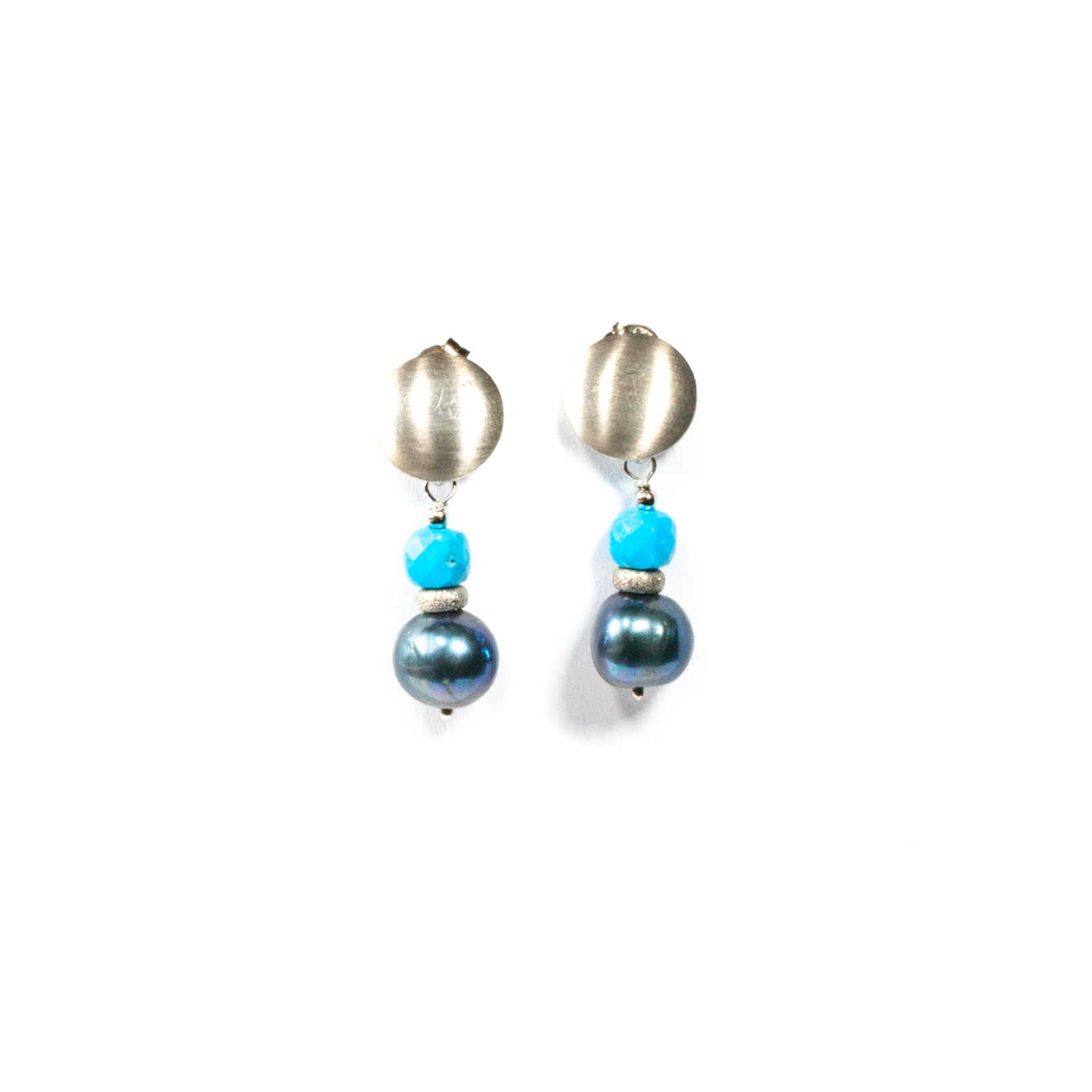 Cercei unicat, concept Ioana Condurățeanu, realizați manual în atelierele Sheba din pietre naturale, cu accesorii din argint. Cerceii conțin pietre fațetate de turcoaz de formă cubică și perle de cultură, suspendate sub o tortiță specială din argint, de formă rotundă. Cerceii sunt prevăzuți cu sistem de prindere pe ureche de tip tijă cu fluturaș, astfel se așază perfect pe lob și lasă piatra să se miște lejer. Bijuteria oferă o notă de serenitate și rafinament, potrivită atât pentru ținute smart-casual, cât și pentru evenimente elegante. Puteți cere ajutorul consilierilor Sheba pentru a vă comanda, în funcție de preferințe și de ținuta la care doriți să îi purtați, un pandantiv potrivit.