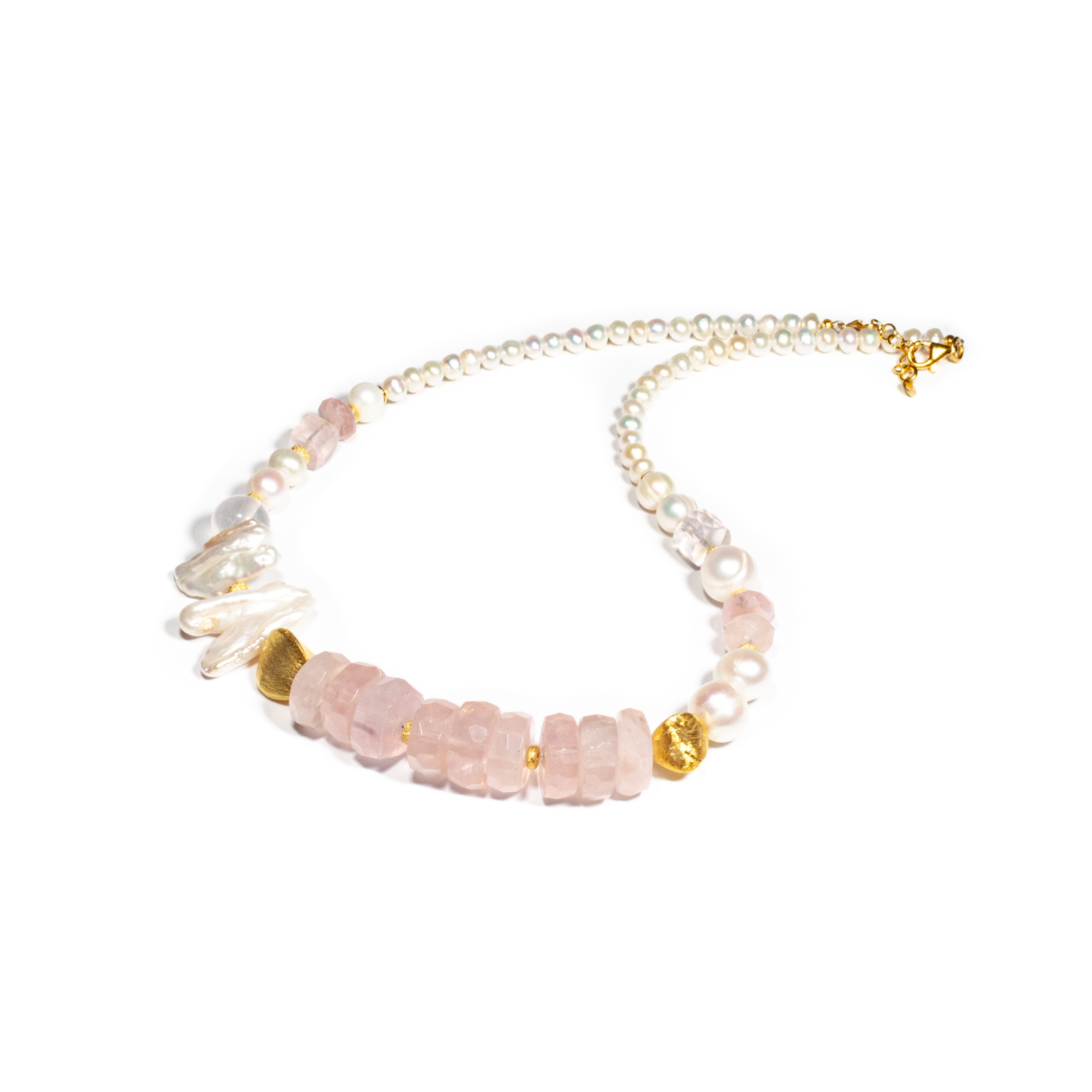 Pietre: cuarț roz, perle de cultură