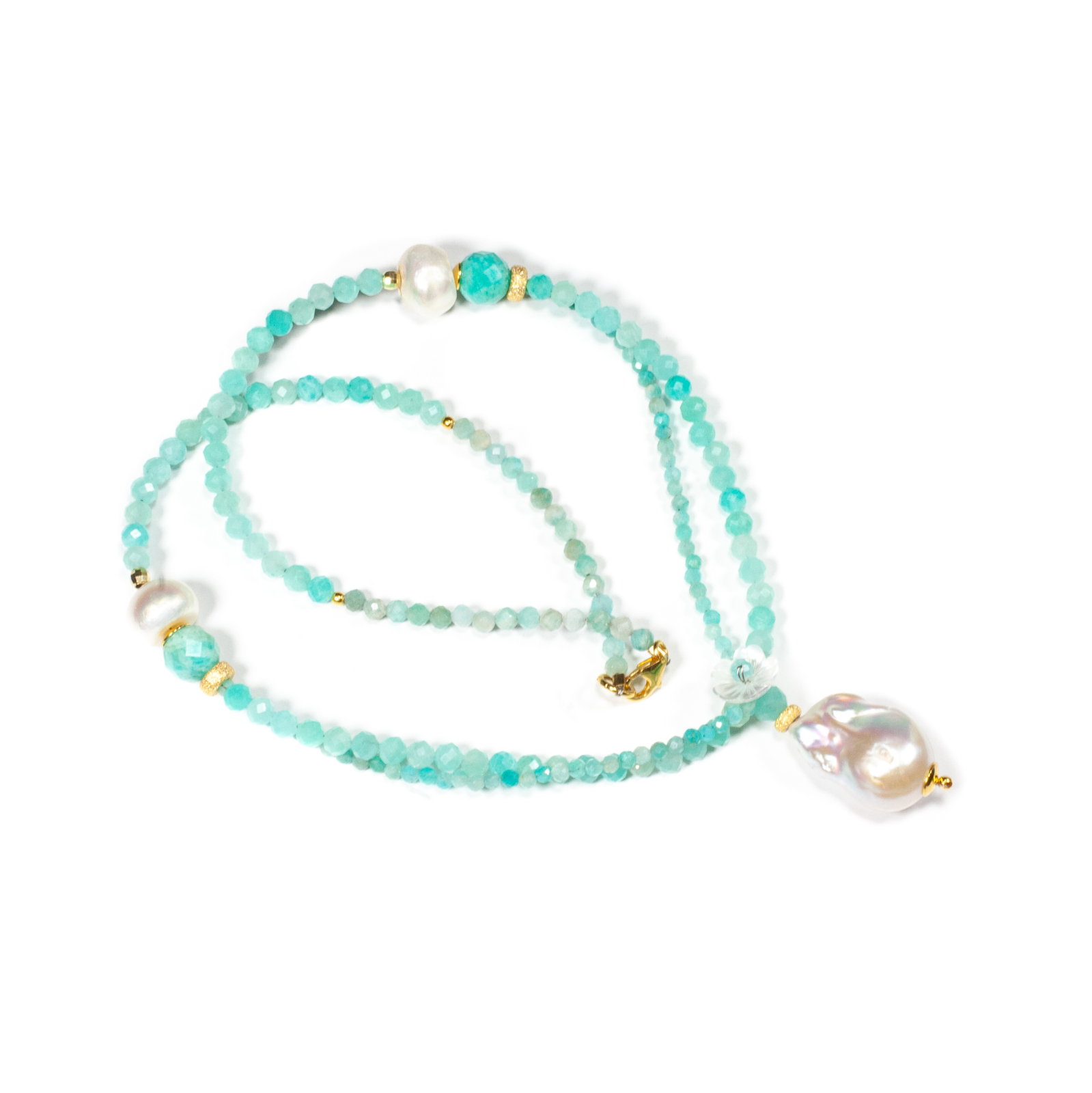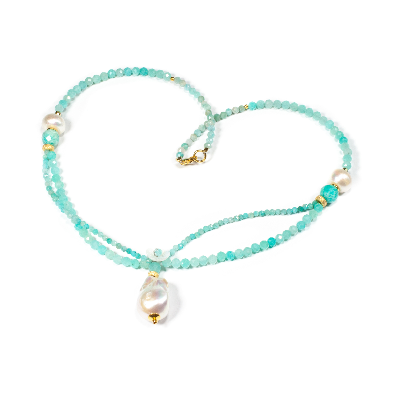 Pietre: amazonit, perlă baroc, perle de cultură