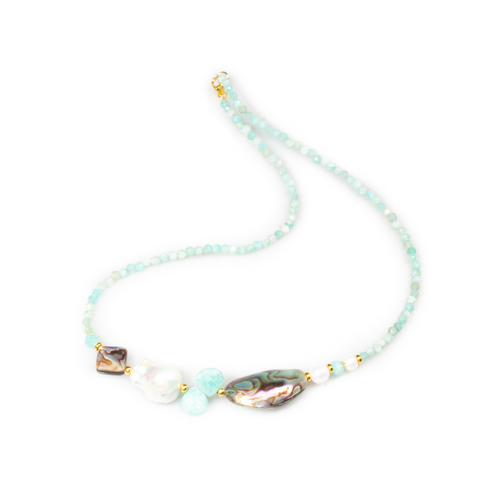 Pietre: amazonit, scoică pawa, perlă baroc
