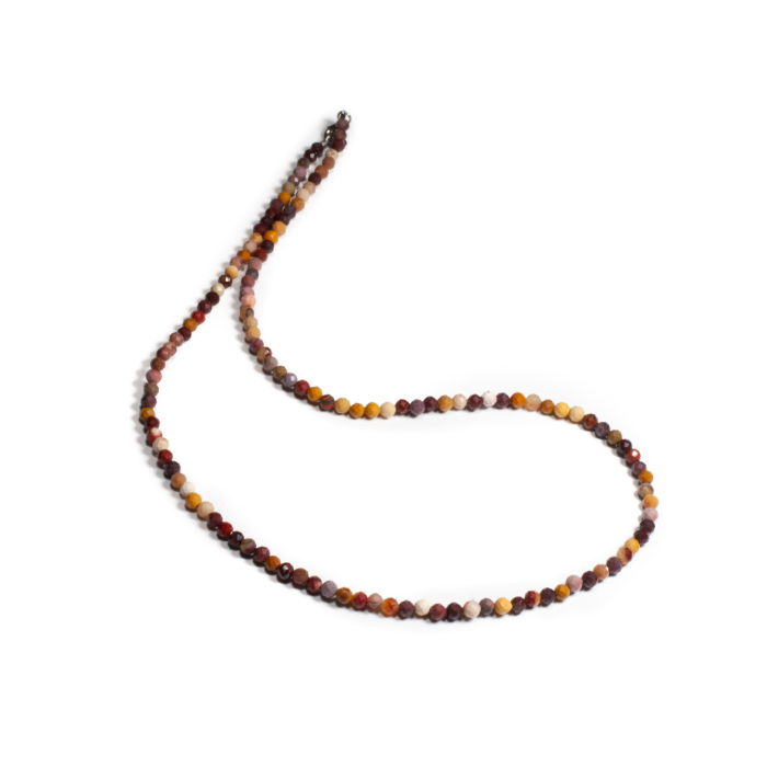 Colier unicat, concept Ioana Condurățeanu, realizat manual în atelierele Sheba din pietre naturale, cu accesorii din argint. Colierul este realizat din pietre fațetate de jasp de formă sferică. Pietrele sunt înșirate pe suport din oțel filetat acoperit cu peliculă de protecție, special creat pentru confecționarea bijuteriilor. Sistemul de închidere este de tip carabină, discretă și sigură. O bijuterie cu personalitate, potrivită ținutelor de seară sau pentru un accent rafinat peste zi. Pentru a vă accesoriza acest colier vă puteți comanda în funcție de preferințe și ținuta la care doriți să îl purtați, cercei sau brățară în același ton.