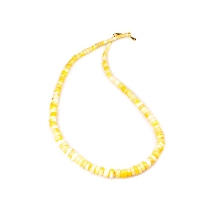 Colier unicat, concept Ioana Condurățeanu, realizat manual în atelierele Sheba din pietre naturale, cu accesorii din argint auriu. Colierul este compus din pietre cu tăietură caboșon de opal natural, de formă sferă turtită. Pietrele sunt înșirate pe suport din oțel filetat acoperit cu peliculă de protecție, special creat pentru confecționarea bijuteriilor. Sistemul de închidere este de tip carabină. Colierul reprezintă o bijuterie splendidă, plină de rafinament și de eleganță. Pentru a vă accesoriza acest colier vă puteți comanda în funcție de preferințe și ținuta la care doriți să îl purtați, o brățară sau cercei în set.