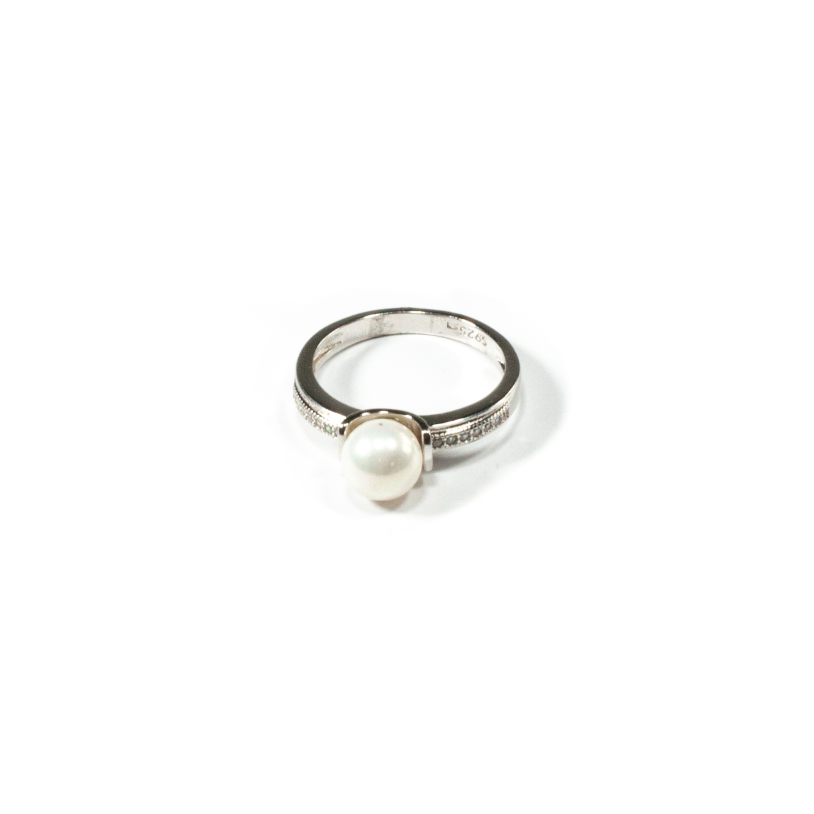 Inel realizat manual din argint ce conține o perlă de cultură de formă sferică și mici zirconii fațetate de formă rotundă. Designul simplu și elegant pune în valoare strălucirea și culoarea naturală a pietrelor, oferind o bijuterie versatilă și rafinată. Pentru un set armonios, asortați cu cercei sau pandantiv, disponibile în colecțiile Sheba.