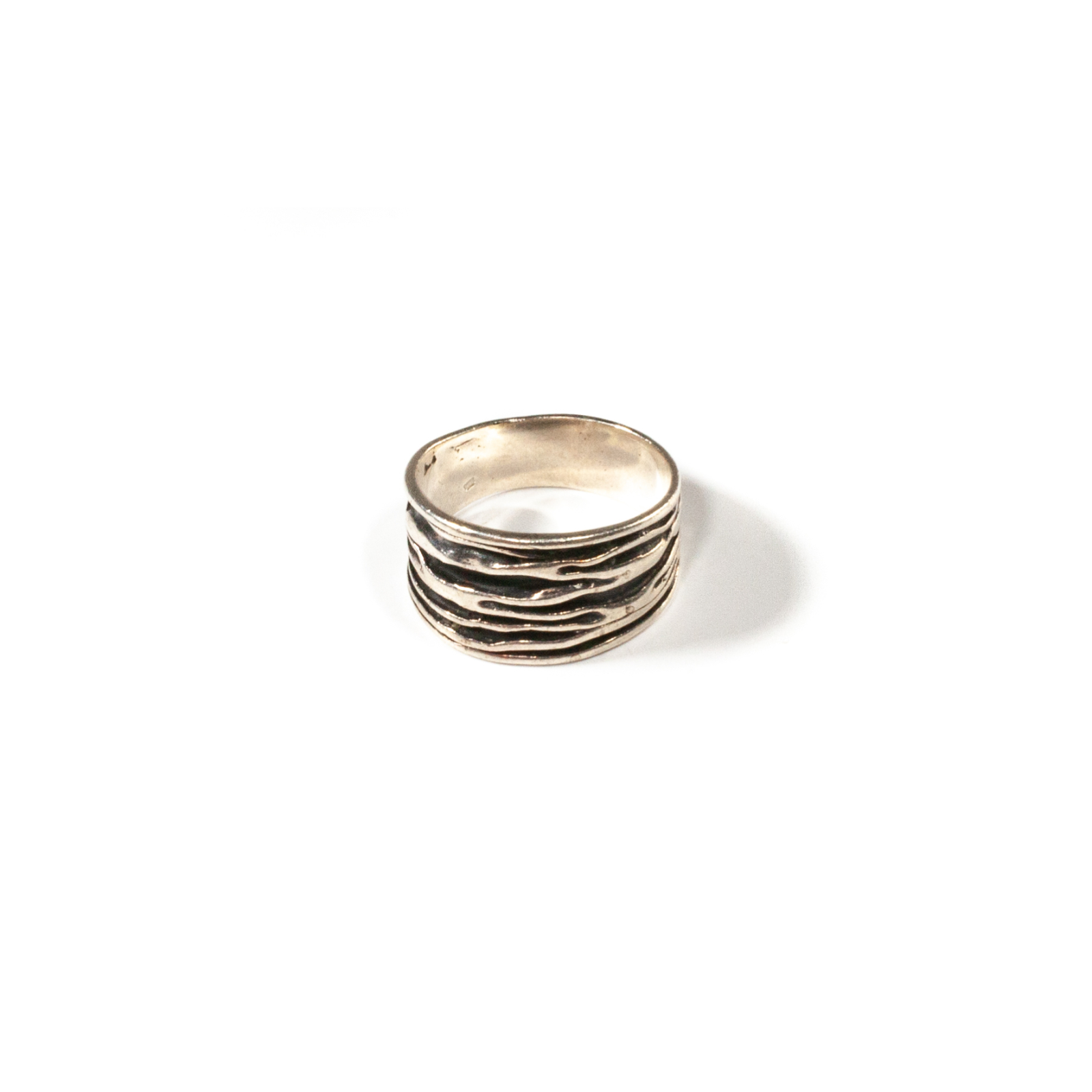 Inel confecționat manual din argint de cea mai mare puritate. Inelului i se păstrează textura originală, puțin mată, oferindu-i un aspect de catifea de nuanță gri perlat și este antichizat pe liniile modelului prin aplicarea unei patine fine. Pentru un set armonios, asortați cu cercei sau pandantiv, disponibile în colecțiile Sheba.