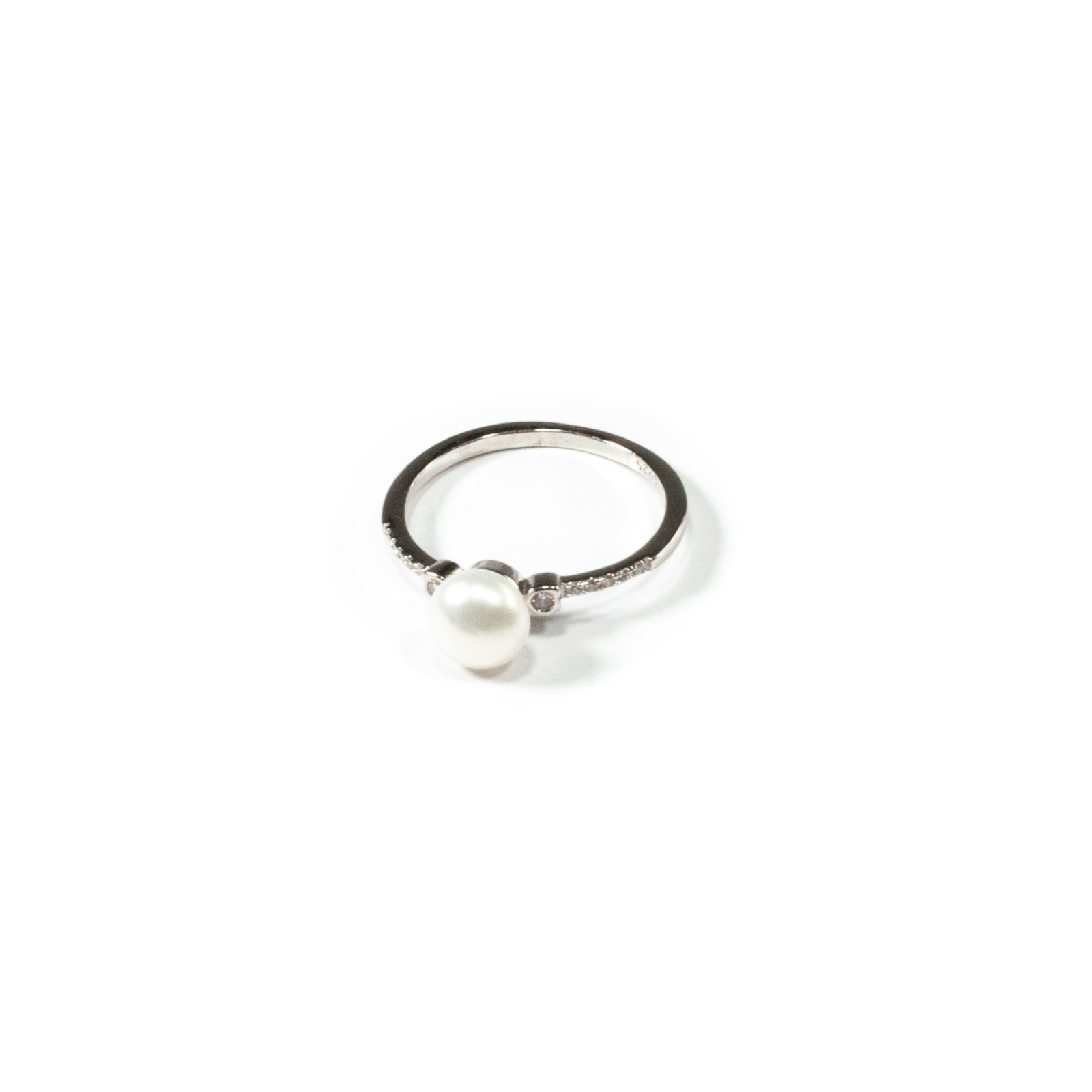 Inel realizat manual din argint ce conține o perlă de cultură de formă sferică și mici zirconii fațetate de formă rotundă. Designul simplu și elegant pune în valoare strălucirea și culoarea naturală a pietrelor, oferind o bijuterie versatilă și rafinată. Pentru un set armonios, asortați cu cercei sau pandantiv, disponibile în colecțiile Sheba.