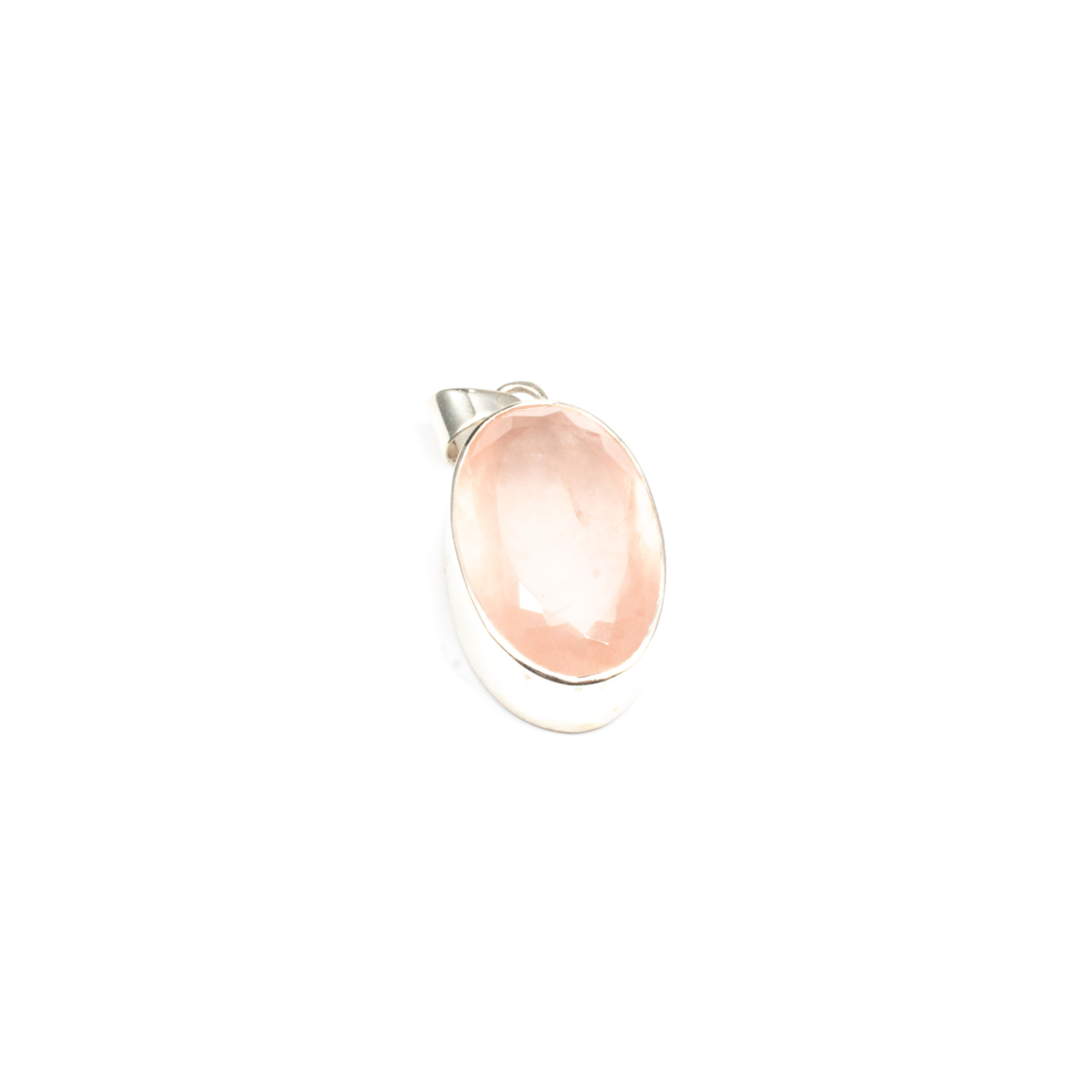 Pandantivul din argint conține o piatră fațetată de cuarț roz de formă ovală, încasetată. Modelul și finisajul simplu și elegant este realizat pe conturul pietrei, pentru a-i scoate în evidență culoarea și strălucirea minunată. Pandantivul se poate purta pe un lanț din argint sau pe o panglică de organza. Oricare din aceste variante se poate comanda, în limita stocului disponibil. Pentru un ansamblu complet, puteți opta pentru cercei sau brățară asortate, disponibile în colecțiile Sheba.