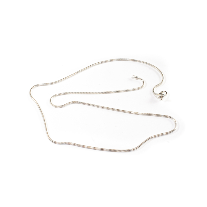 Lanț realizat din argint, cu model tip șarpe, fin și flexibil. Este prevăzut cu sistem de prindere tip carabină, discretă și sigură. Bijuteria este versatilă și comod de purtat, fiind potrivită pentru o gamă variată de pandantive.