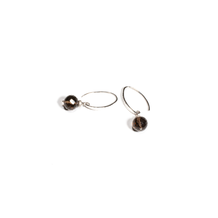 Cercei unicat, concept Ioana Condurățeanu, realizați manual în atelierele Sheba din pietre naturale, cu accesorii din argint. Cerceii sunt compuși din pietre fațetate de cuarț fumuriu de formă sferică. Sistemul de prindere de tip tortiță deschisă fixează cerceii ușor și permite pietrei să se miște lejer. Bijuteria oferă o notă de serenitate și rafinament, potrivită atât pentru ținute smart-casual, cât și pentru evenimente elegante. Puteți cere ajutorul consilierilor Sheba pentru a vă comanda, în funcție de preferințe și de ținuta la care doriți să îi purtați, un pandantiv potrivit.