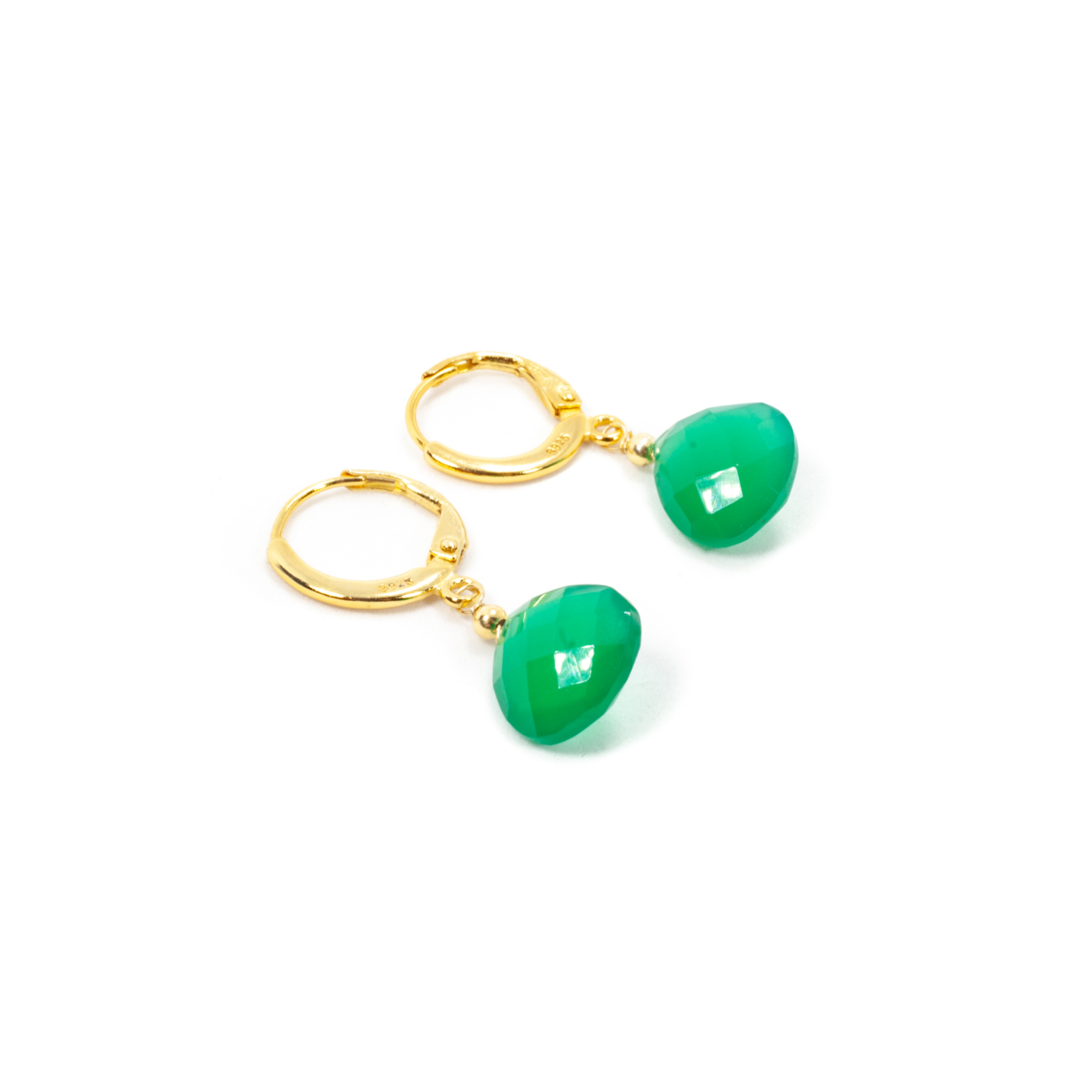 Cercei unicat, concept Ioana Condurățeanu, realizați manual în atelierele Sheba din pietre naturale, cu accesorii din argint auriu. Cerceii sunt compuși din pietre fațetate de agat verde de formă lacrimă. Cerceii sunt prevăzuți cu sistem de prindere pe ureche de tip tortițe închise (lever-back), oferind un plus de sigurață și confort. Bijuteria oferă o notă de serenitate și rafinament, potrivită atât pentru ținute smart-casual, cât și pentru evenimente elegante. Puteți cere ajutorul consilierilor Sheba pentru a vă comanda, în funcție de preferințe și de ținuta la care doriți să îi purtați, un pandantiv potrivit.