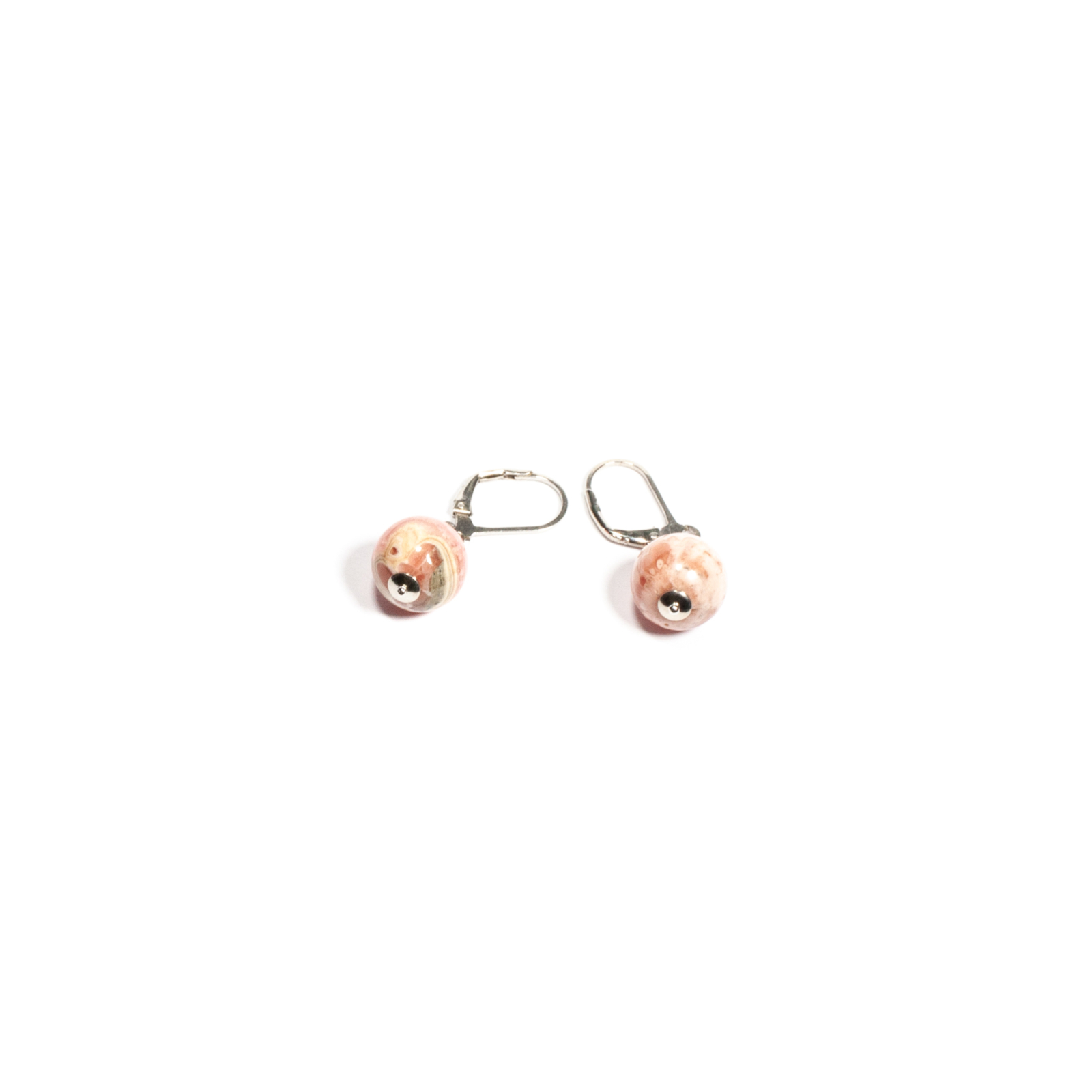Cercei unicat, concept Ioana Condurățeanu, realizați manual în atelierele Sheba din pietre naturale, cu accesorii din argint. Cerceii sunt compuși din pietre cu tăietură caboșon de rodocrozit de formă sferică. Cerceii sunt prevăzuți cu sistem de prindere pe ureche de tip tortițe închise (lever-back), oferind un plus de sigurață și confort. Bijuteria oferă o notă de serenitate și rafinament, potrivită atât pentru ținute smart-casual, cât și pentru evenimente elegante. Puteți cere ajutorul consilierilor Sheba pentru a vă comanda, în funcție de preferințe și de ținuta la care doriți să îi purtați, un pandantiv potrivit.