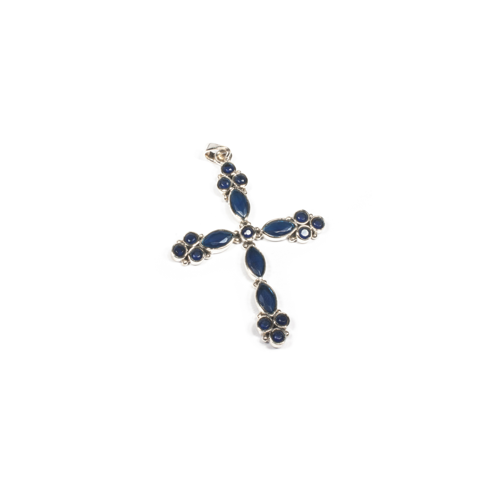 Pandantivul este realizat din argint în formă de cruce și conține pietre fațetate de corindon de formă rotundă și marchiză, încasetate pe contur. Pandantivul reprezintă o bijuterie impunătoare, cu rafinament clasic. Pentru un ansamblu complet, puteți opta pentru cercei sau brățară asortate, disponibile în colecțiile Sheba. De asemenea, puteți alege și un lanț potrivit pentru acest pandantiv.