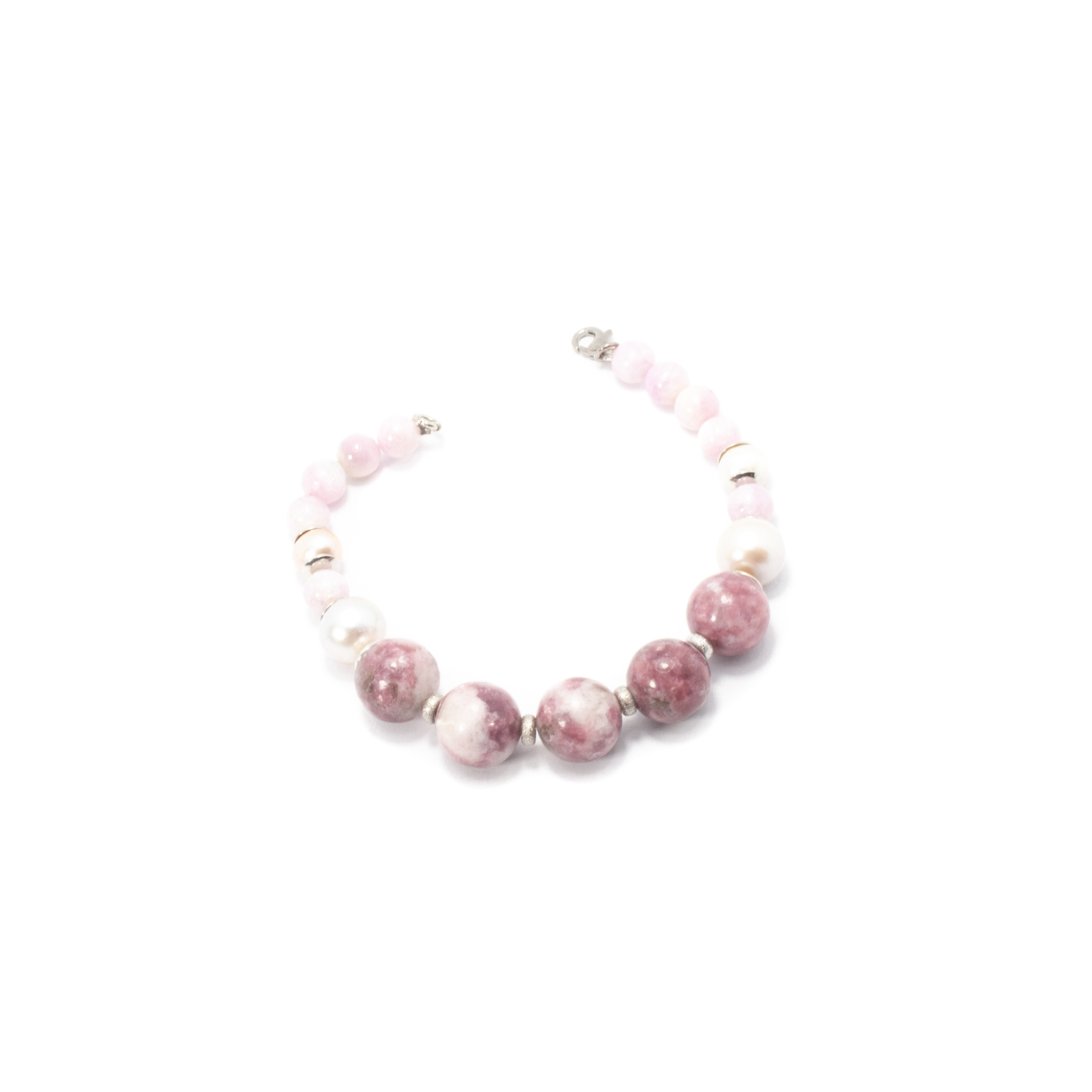Brățară unicat, concept Ioana Condurățeanu, realizată manual în atelierele Sheba din pietre naturale, cu accesorii din argint auriu. Brățara este compusă din pietre cu tăietură caboșon de thulit de formă sferică. Sistemul de închidere este de tip carabină, discretă și sigură. Pietrele sunt înșirate pe suport din oțel filetat acoperit cu peliculă de protecție, special creat pentru confecționarea bijuteriilor. Brățara reprezintă o bijuterie splendidă, plină de rafinament și de eleganță. Pentru a vă accesoriza această brățară, vă puteți comanda în funcție de preferințe și de ținuta la care doriți să o purtați, colier sau cercei în set.