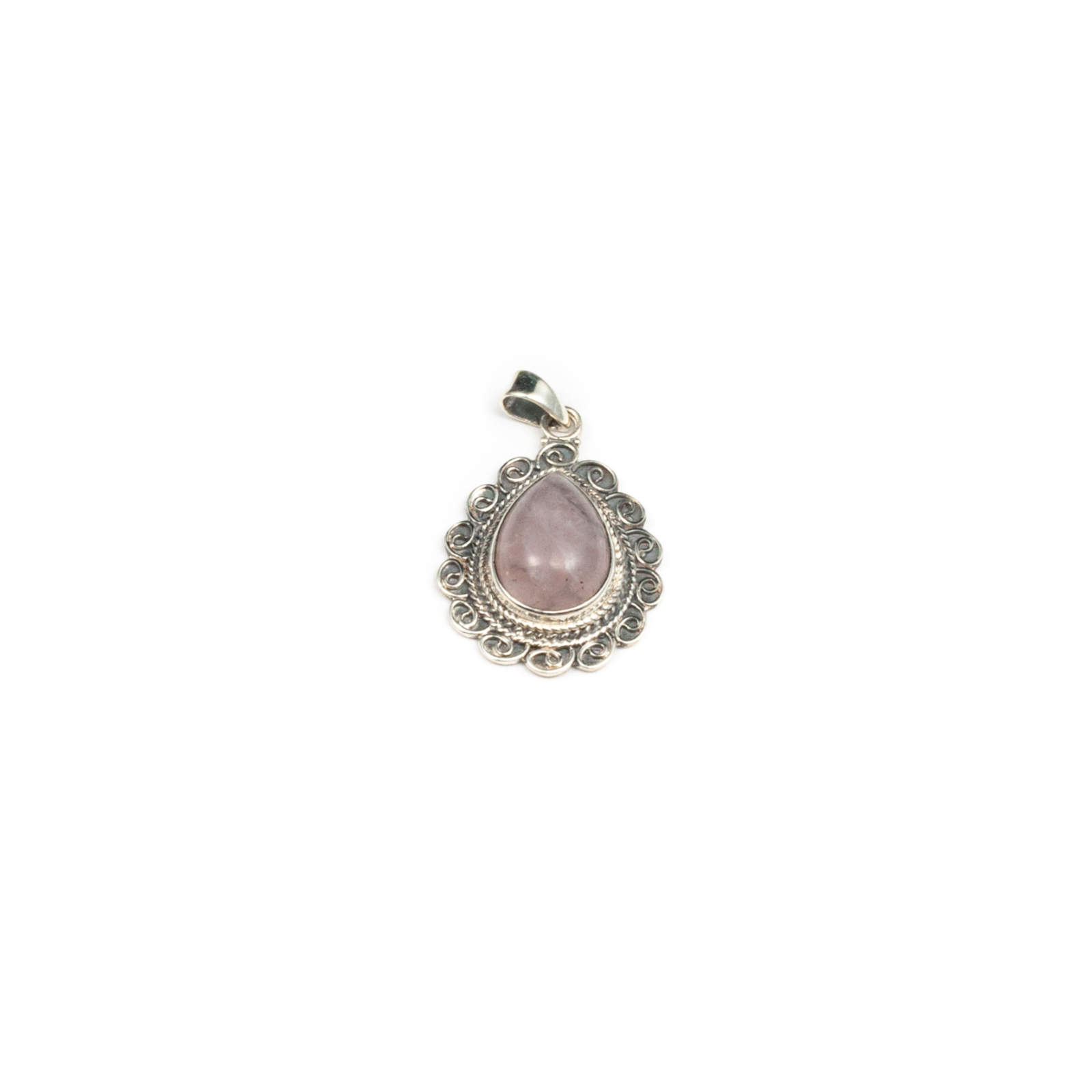 Pandantivul confecționat din argint conține o piatră cu tăietură caboșon de cuarț roz de formă lacrimă, încasetată pe contur. Montura este realizată manual, de artizani din Bali, renumiți pentru măiestria lor în confecționarea bijuteriilor. Pandantivul reprezintă o bijuterie versatilă, plină de energie și de culoare. Pentru un ansamblu complet, puteți opta pentru cercei sau brățară asortate, disponibile în colecțiile Sheba. De asemenea, puteți alege și un lanț potrivit pentru acest pandantiv.