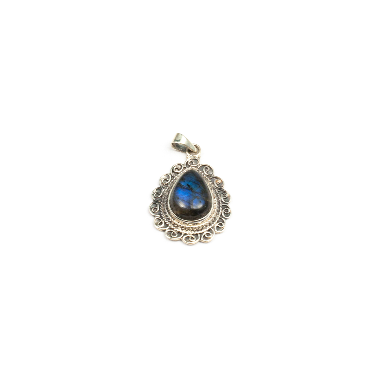Pandantivul confecționat din argint conține o piatră cu tăietură caboșon de labradorit de formă lacrimă, încasetată pe contur. Montura este realizată manual, de artizani din Bali, renumiți pentru măiestria lor în confecționarea bijuteriilor. Pandantivul reprezintă o bijuterie versatilă, plină de energie și de culoare. Pentru un ansamblu complet, puteți opta pentru cercei sau brățară asortate, disponibile în colecțiile Sheba. De asemenea, puteți alege și un lanț potrivit pentru acest pandantiv.