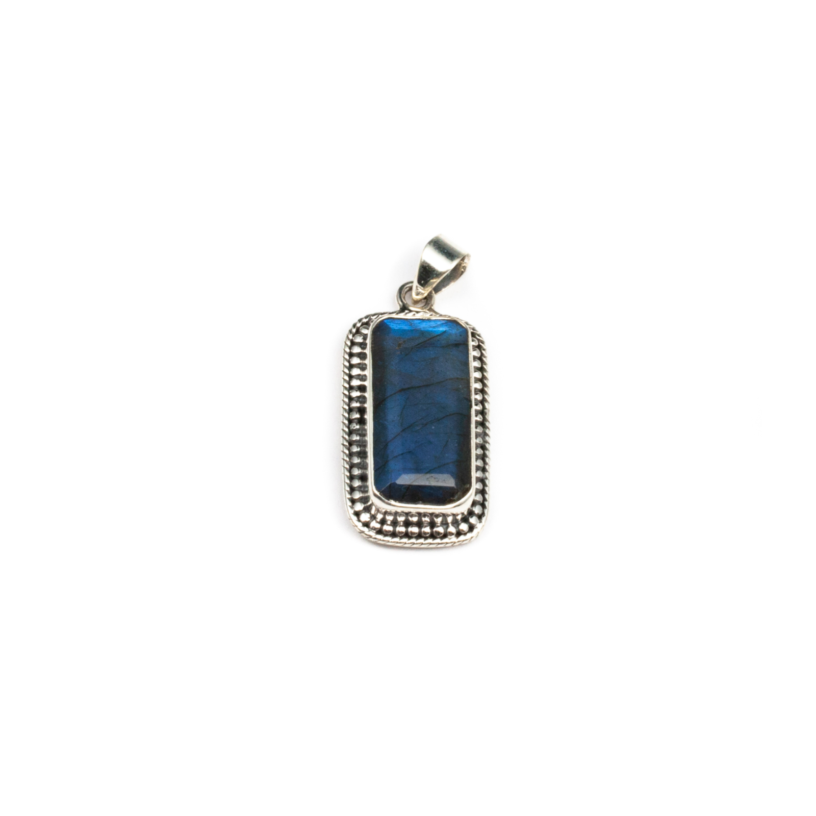 Pandantivul confecționat din argint conține o piatră cu tăietură caboșon de labradorit de formă rectangulară, încasetată pe contur. Montura este realizată manual, de artizani din Bali, renumiți pentru măiestria lor în confecționarea bijuteriilor. Pandantivul reprezintă o bijuterie versatilă, plină de energie și de culoare. Pentru un ansamblu complet, puteți opta pentru cercei sau brățară asortate, disponibile în colecțiile Sheba. De asemenea, puteți alege și un lanț potrivit pentru acest pandantiv.
