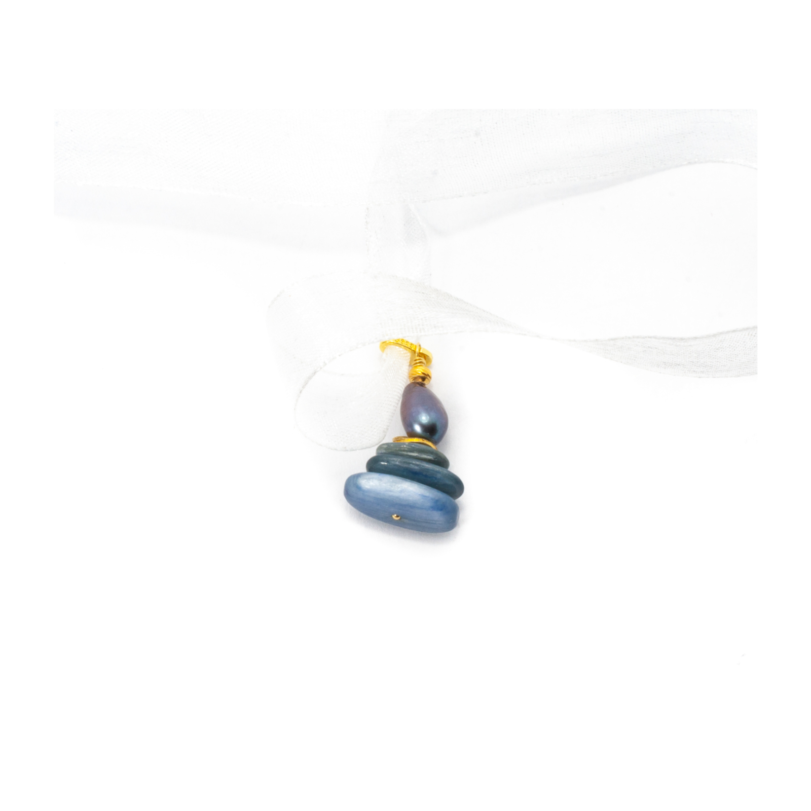 Pandantiv unicat, concept Ioana Condurățeanu, realizat manual în atelierele Sheba din perlă de cultură și chianit, cu accesorii din argint auriu. Pandantivul este compus dintr-o perlă de cultură și din trei pietre cu tăietură caboșon de chianit. Bijuteria oferă o notă de serenitate și rafinament, potrivită atât pentru ținute smart-casual, cât și pentru evenimente elegante. De asemenea, se poate transforma într-un detaliu fermecător pentru un colier sau o brățară sau într-un mic accent decorativ care dă personalitate oricărui obiect. Puteți selecta ca suport: panglică de organza, panglică de saten sau șnur textil asortat. Solicitați ajutorul consilierilor Sheba pentru a alege culoarea dorită în funcție de disponibilitate. Pentru un efect stilistic complet, puteți accesoriza acest pandantiv cu cercei sau o brățară în același ton.