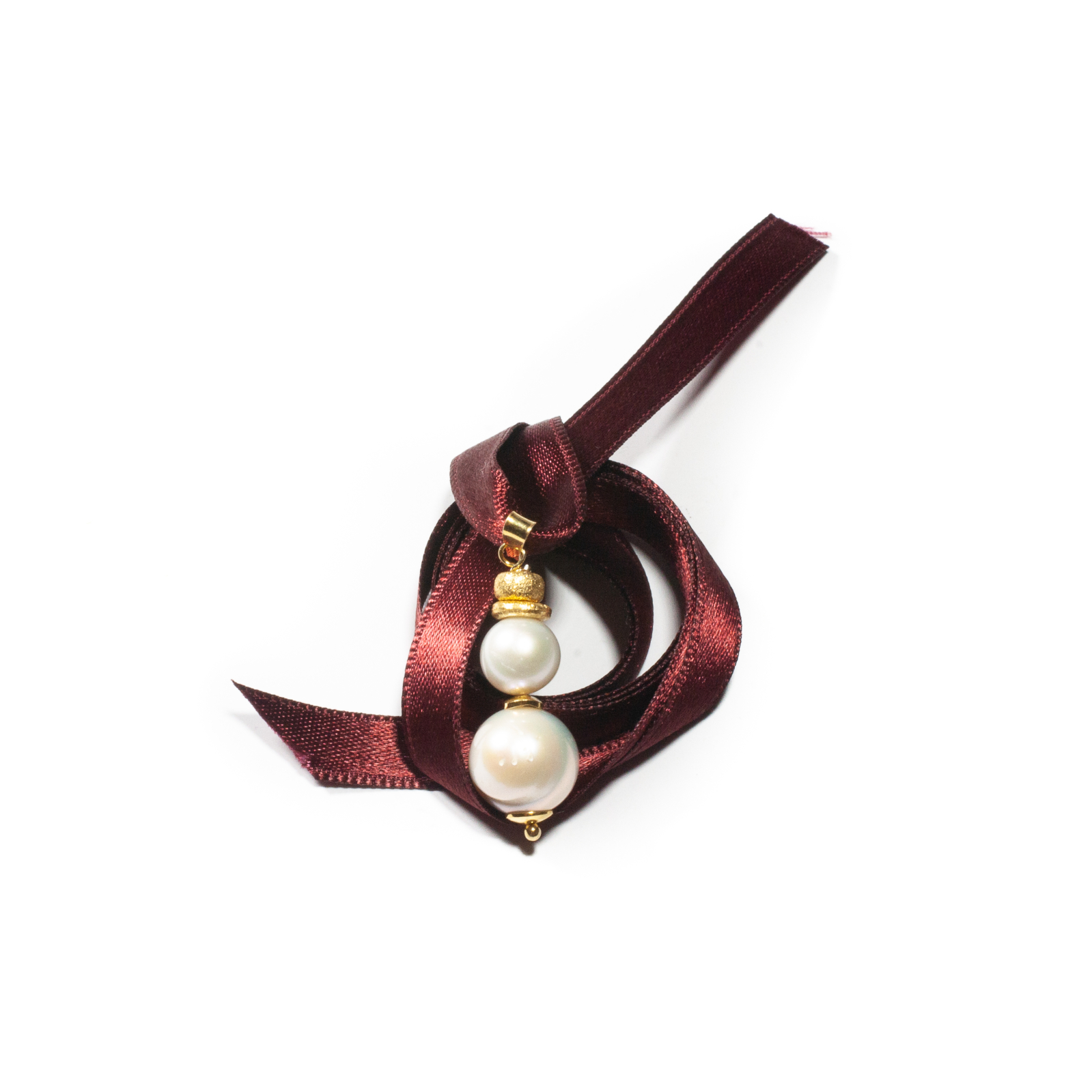 Pandantiv unicat, concept Ioana Condurățeanu, realizat manual în atelierele Sheba din perle de cultură, cu accesorii din argint auriu. Pandantivul este compus din două perle de cultură de formă sferică. Accesoriile din argint auriu completează designul într-o manieră subtilă, punând în valoare strălucirea naturală a perlelor. Bijuteria oferă o notă de serenitate și rafinament, potrivită atât pentru ținute smart-casual, cât și pentru evenimente elegante. De asemenea, se poate transforma într-un detaliu fermecător pentru un colier sau o brățară sau într-un mic accent decorativ care dă personalitate oricărui obiect. Puteți selecta ca suport: panglică de organza, panglică de saten sau șnur textil asortat. Solicitați ajutorul consilierilor Sheba pentru a alege culoarea dorită în funcție de disponibilitate. Pentru un efect stilistic complet, puteți accesoriza acest pandantiv cu cercei sau o brățară în același ton.