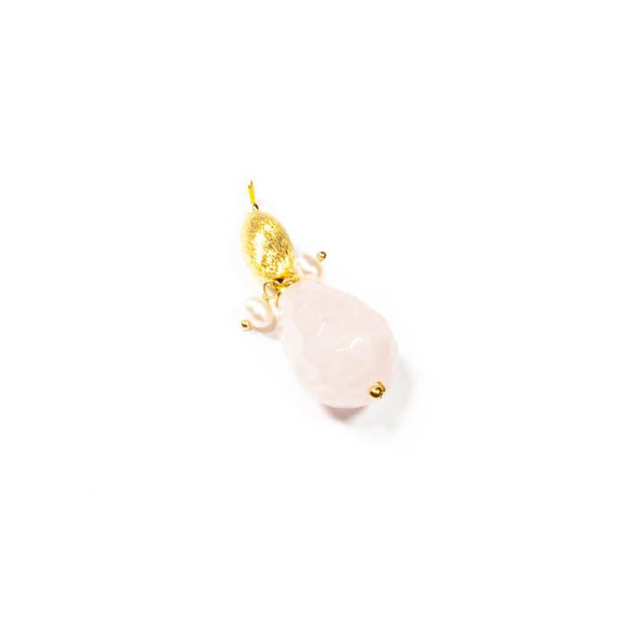Pandantiv unicat, concept Ioana Condurățeanu, realizat manual în atelierele Sheba din pietre naturale, cu accesorii din argint. Pandantivul este compus dintr-o piatră fațetată de cuarț roz și din perle de cultură, cu anou din argint auriu. Este o bijuterie delicată și elegantă, vibrantă prin culoare și energie. Modelul și finisajul modern îl recomandă pentru orice ținută, cât și pentru un cadou deosebit. Pentru un ansamblu complet, puteți opta pentru cercei sau brățară asortate, disponibile în colecțiile Sheba. De asemenea, puteți alege și un lanț potrivit pentru acest pandantiv.